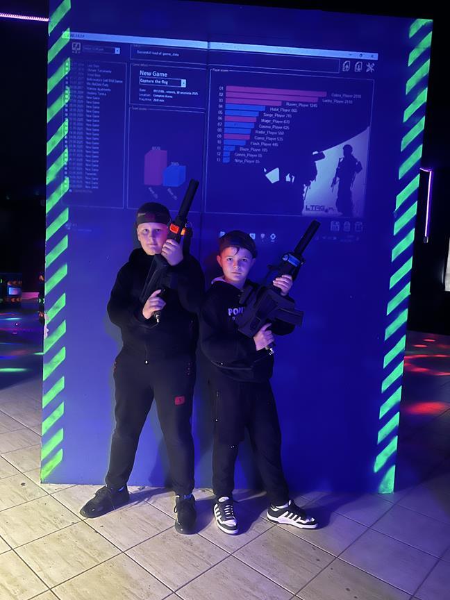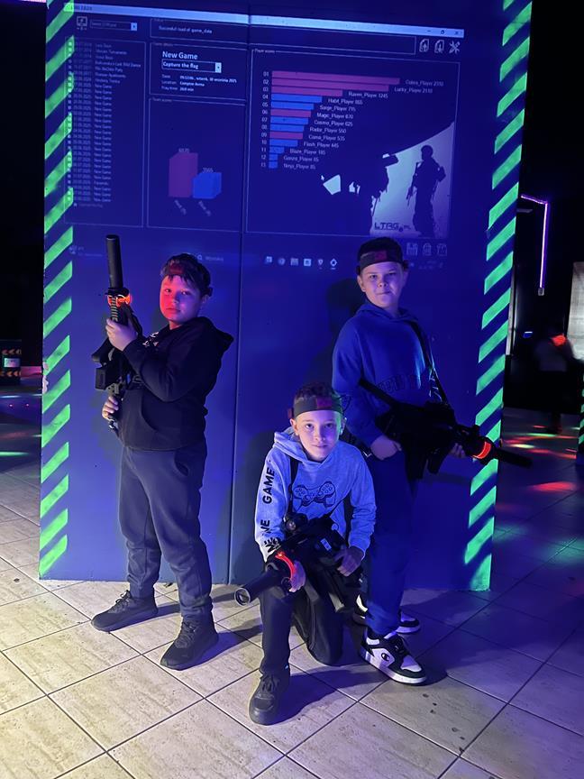 W Dniu Chłopca wybraliśmy się do Sali Laser War w Turku. Była to atrakcja inna niż wszystkie, w jakich dotychczas braliśmy udział. Świetnie się bawiliśmy podczas „bitwy” laserowej tworząc zgrane zespoły. Uczyliśmy się przy tym współpracy i osiągania wspólnych celów. Było bardzo wesoło i niezwykle aktywnie spędziliśmy czas.