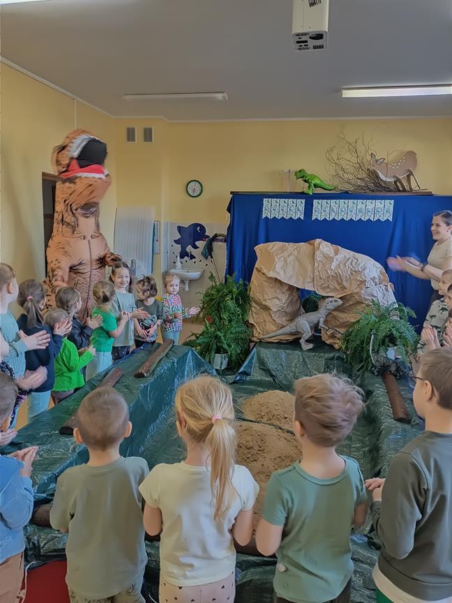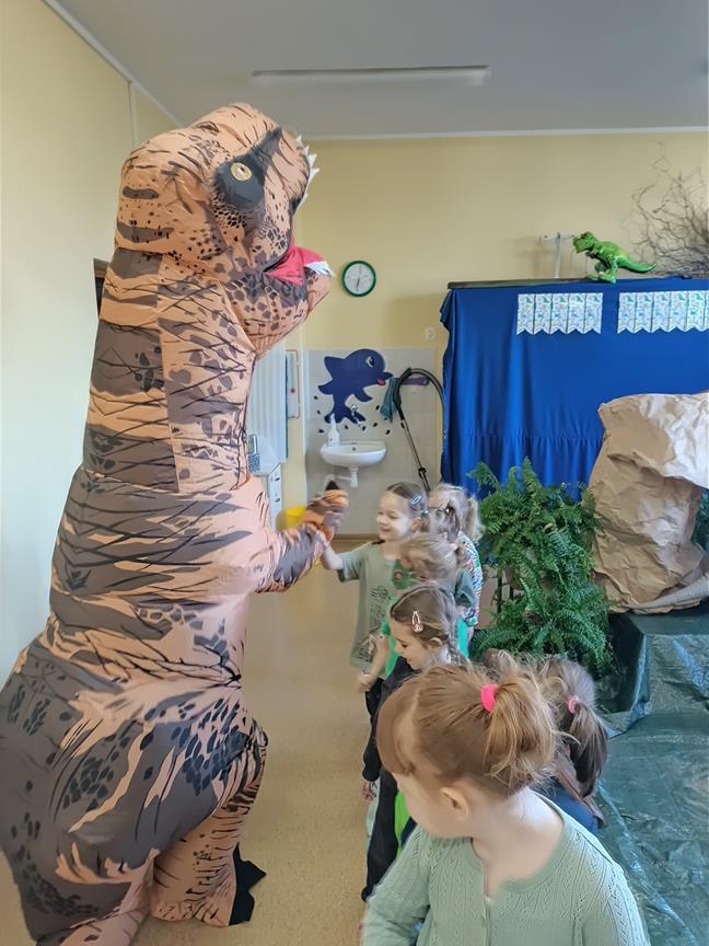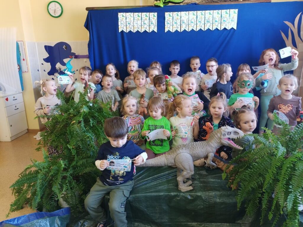 4 marca w naszym przedszkolu obchodziliśmy wyjątkowy Dzień Dinozaura, który dostarczył dzieciom wielu radości i ciekawych doświadczeń. Tego dnia dzieci przeniosły się do prehistorycznego świata dinozaurów. Przedszkolaki poznały różne gatunki dinozaurów, oglądały książki i ilustracje, a także uczestniczyły w zabawach ruchowych oraz edukacyjnych związanych z tematyką tych niezwykłych stworzeń. Nie zabrakło również grupowej pracy plastycznej. Dzięki takim zajęciom dzieci mogą rozwijać swoją ciekawość świata, wyobraźnię oraz zdobywać nową wiedzę w atrakcyjny sposób.